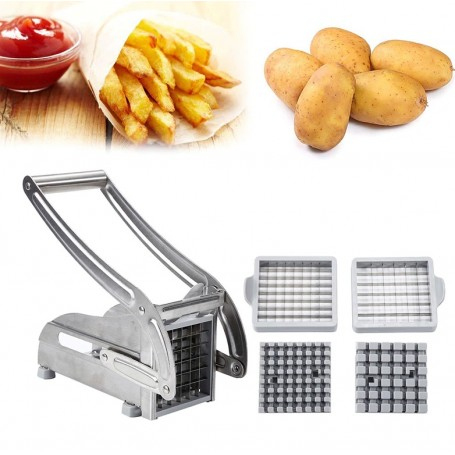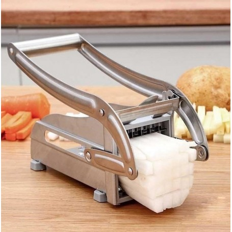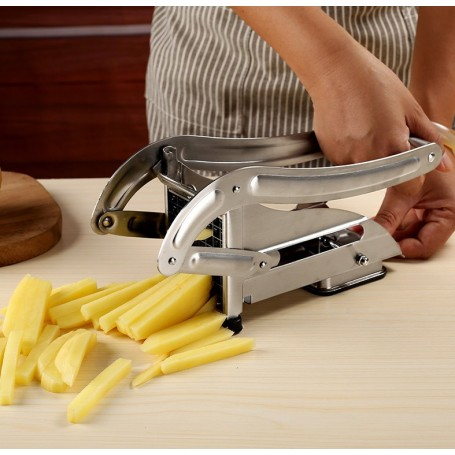 Dispozitiv pentru taiat cartofi pai, 2 grosimi diferite. Simplu de folosit, in doua miscari, introduceti cartoful si apasati in jos manerul aparatului.