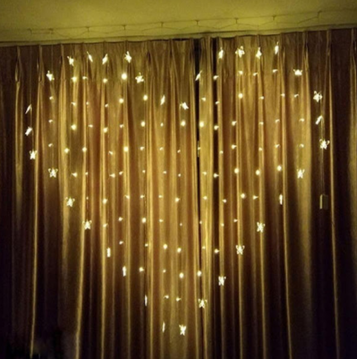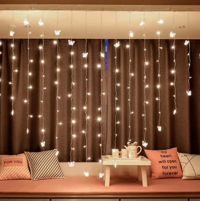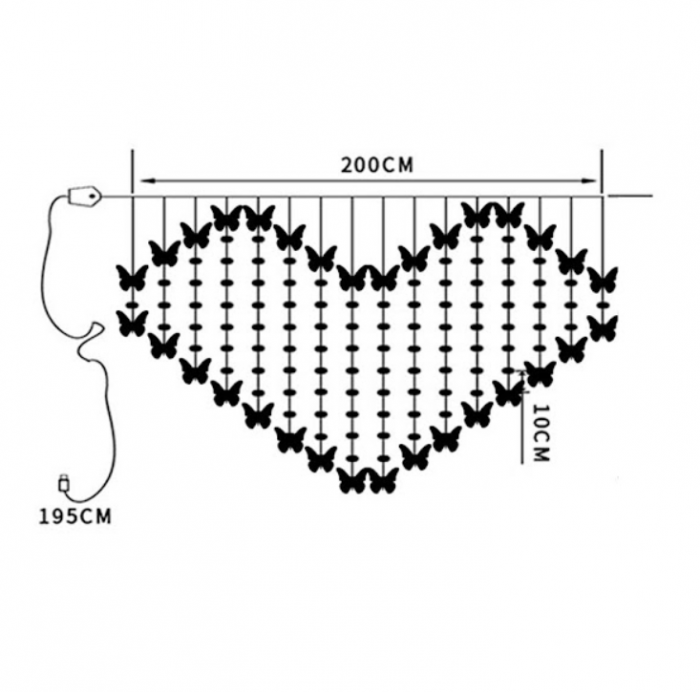 Instalatie Craciun - perdea luminoasa inima cu fluturi, Alb cald