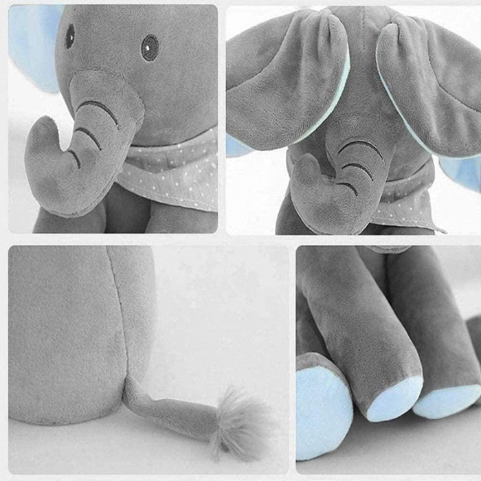 Elefantul este realizat dintr-un pluș moale și pufos, iar cusăturile sunt închise complet, astfel încât copiii să nu poatpă să îl desfacă.