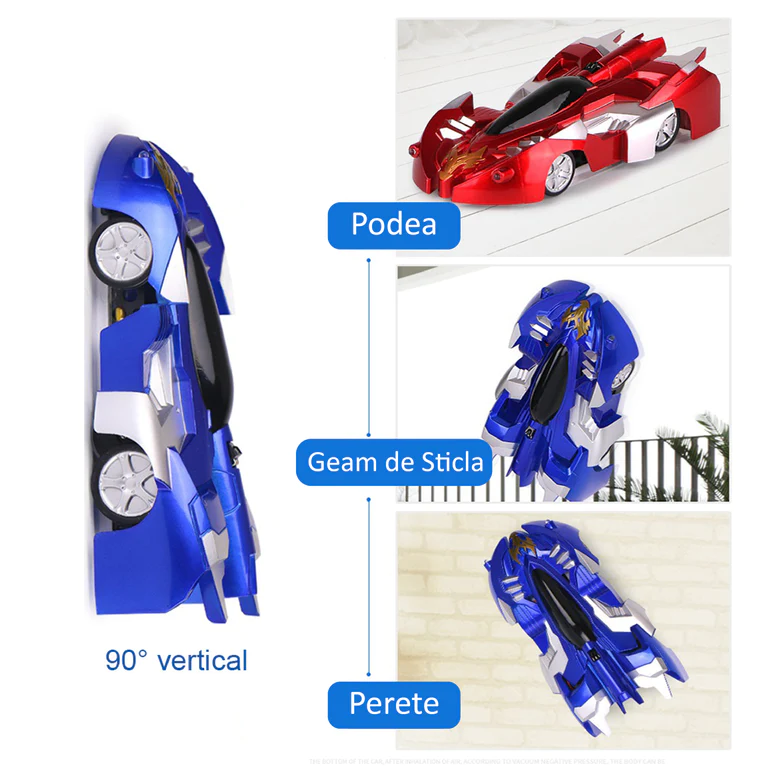Masinuta WALL RALLYST este o jucarie fantastica care sfideaza gravitatia. Ea poate merge pe pereti, tavan, si orice alta suprafata plata folosing o tehnologie unica de suctiune. Masinuta este controlata cu o telecomanda, permitandu-i copilului tau sa faca tot felul de cascadorii si sa aibe parte de multa distractie!