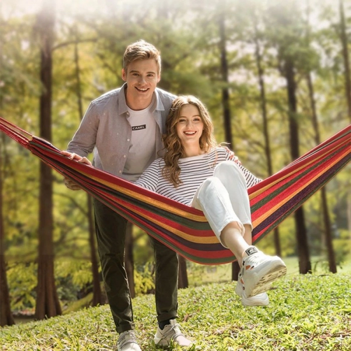 Va puteti relaxa alaturi de persoana iubita si sa planificati urmatoarea excursie in care hamacul va fi de nelipsit din bagaj asigurandu-va confortul necesar indiferent de loc.